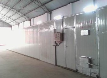 我公司生產(chǎn)的海帶烘干機(jī)為隧道式海帶烘干機(jī),烘干隧道型似整體,內(nèi)分多單元,物料接受溫度由低及高,循序漸進(jìn)。烘干機(jī)工作方式是人工將海帶懸掛在料車上,從進(jìn)料端進(jìn)入隧道,在隧道內(nèi)料車裝滿后便開始循環(huán)烘干,出料端出一車干料,進(jìn)料端進(jìn)一車濕料,依次循環(huán)烘干,在整個烘干過程中,烘干溫度由低到高,因為特殊的通風(fēng)方式和特殊的海帶懸掛方法,保證海帶平展,不粘連,烘干快,顏色好。晾曬的海帶,無論從質(zhì)量、色澤與烘干出的海帶無可比擬。